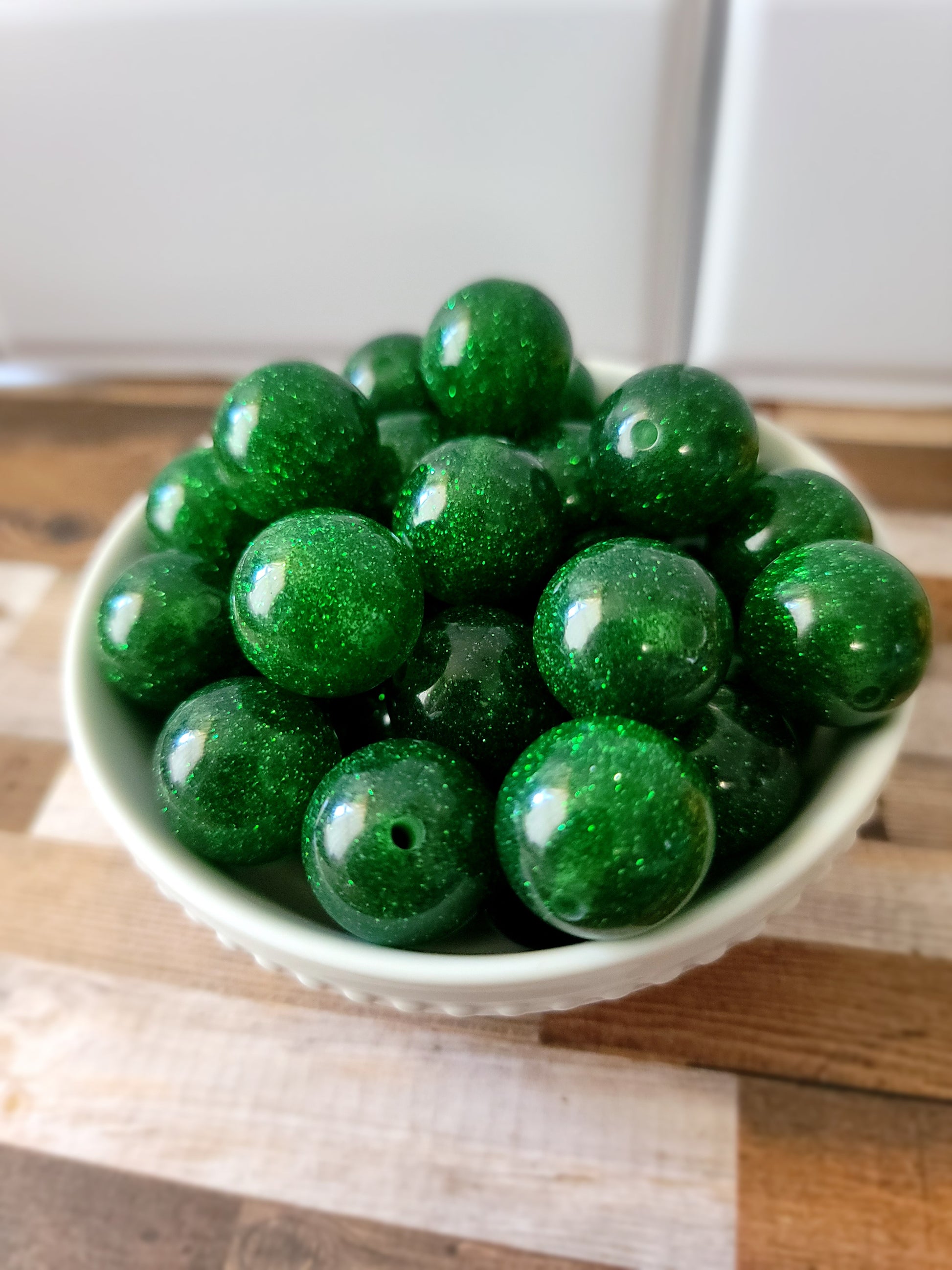 20mm Glittery Forest Green Beads are perfect for home decor or Arts and Crafts! You can purchase in packs of 1, 4, 12 and 24.