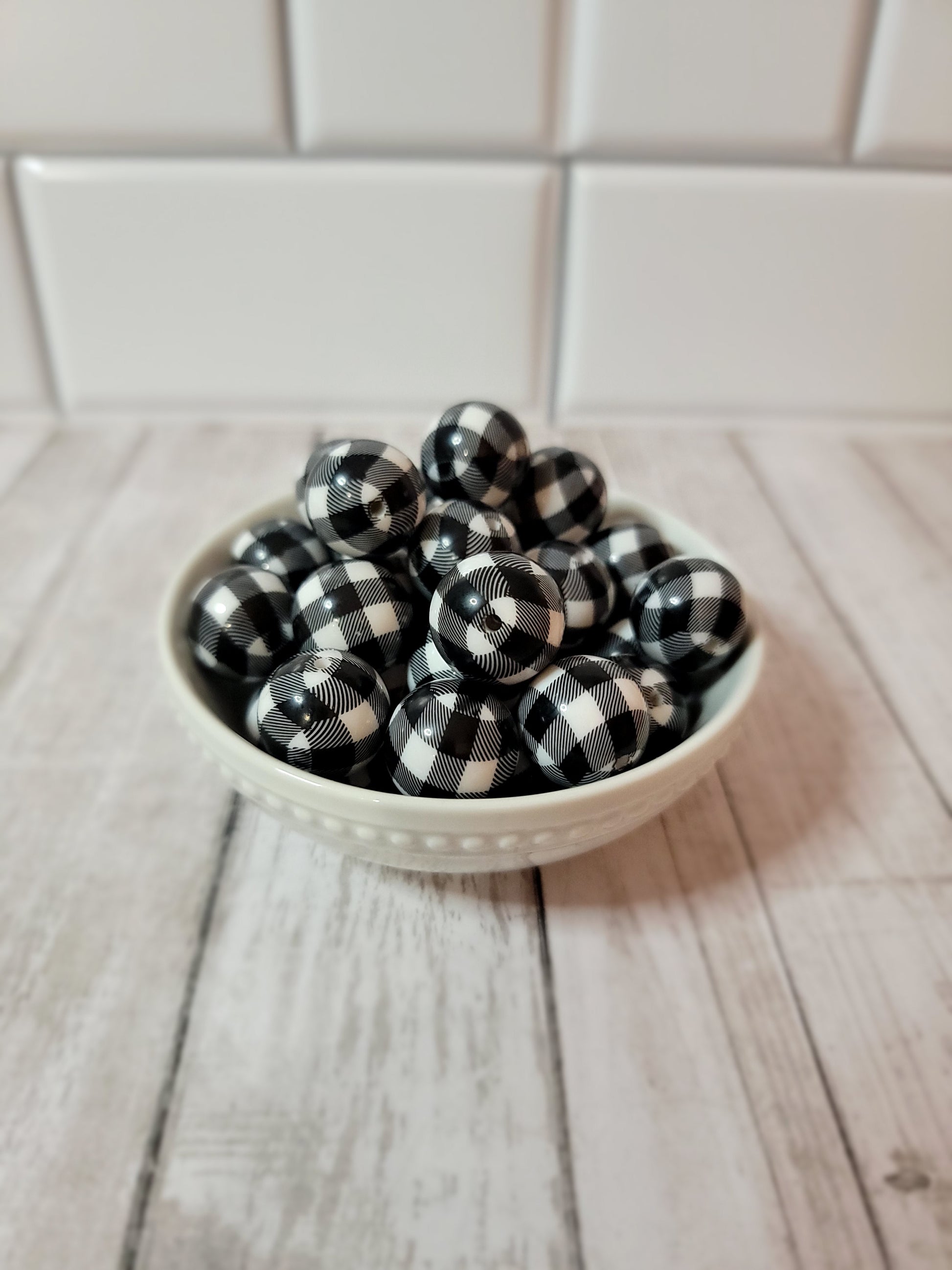 20 MM Black and White Plaid Beads