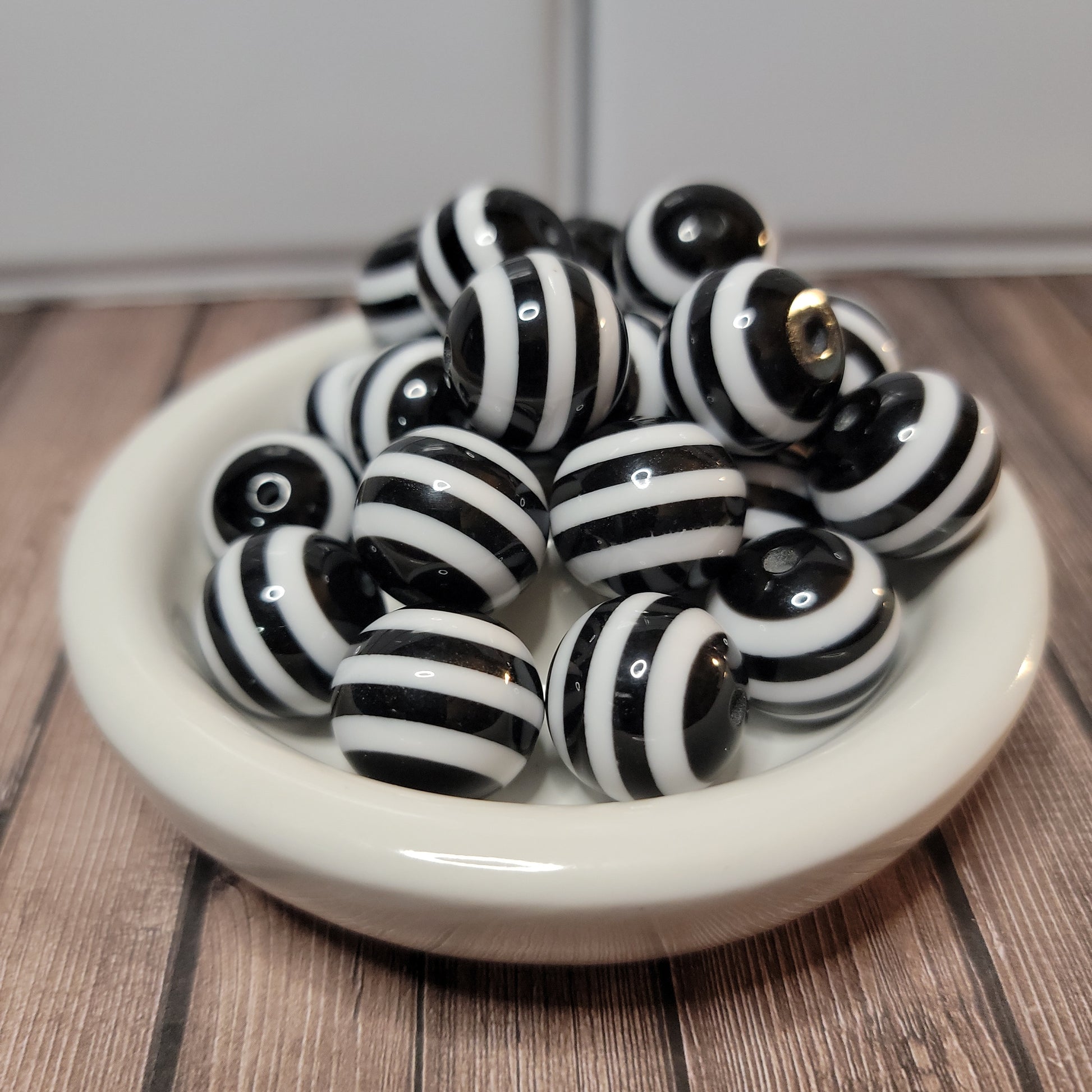 20mm Black and White Stripe Beads perfect for home decor and crafts! Available in 1, 4, 12 and 24 packs.