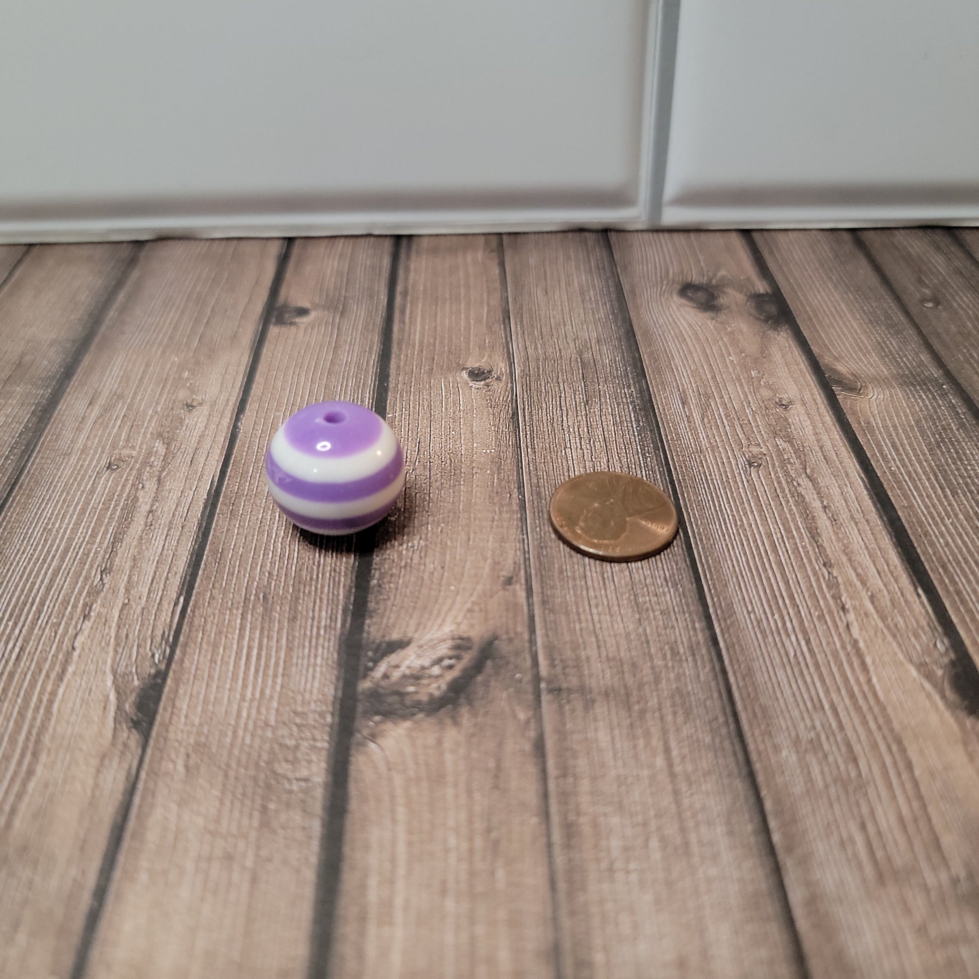 20mm Purple Lilac Stripe Beads perfect for home decor and crafts! Available in 1, 4, 12 and 24 packs.