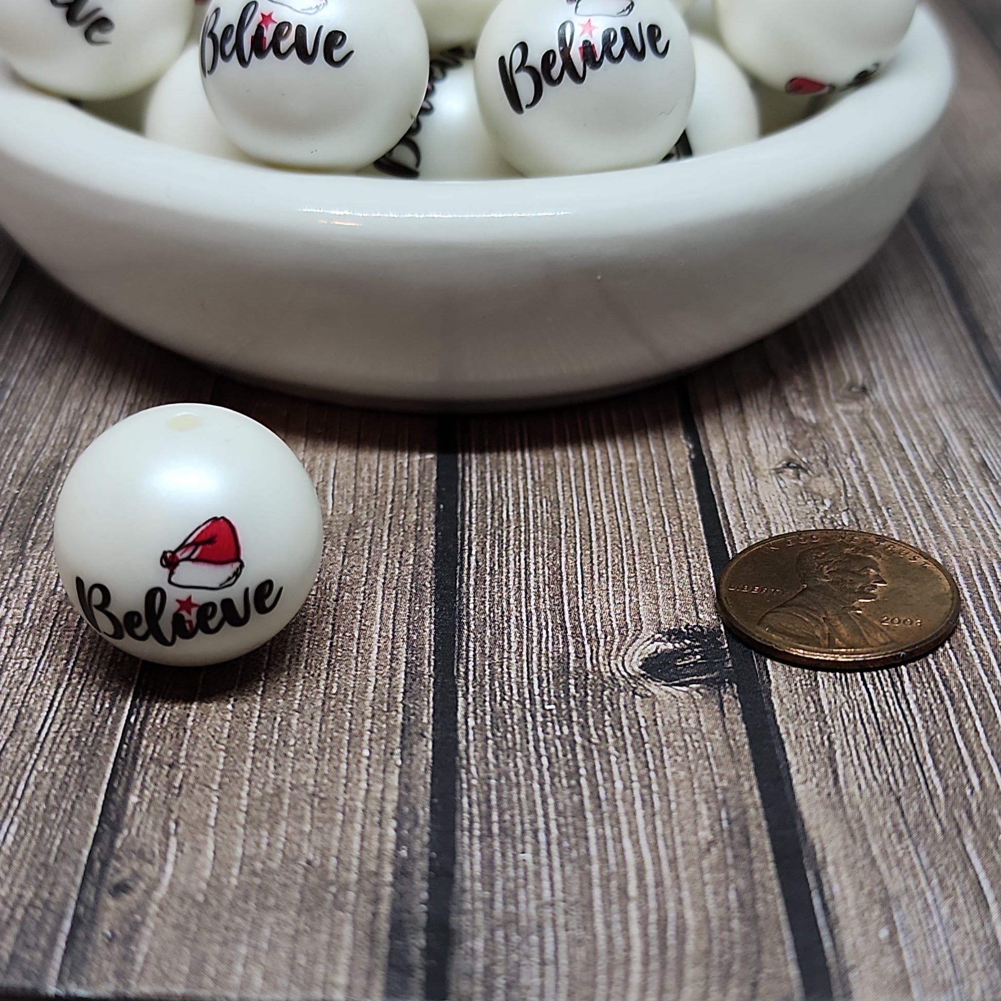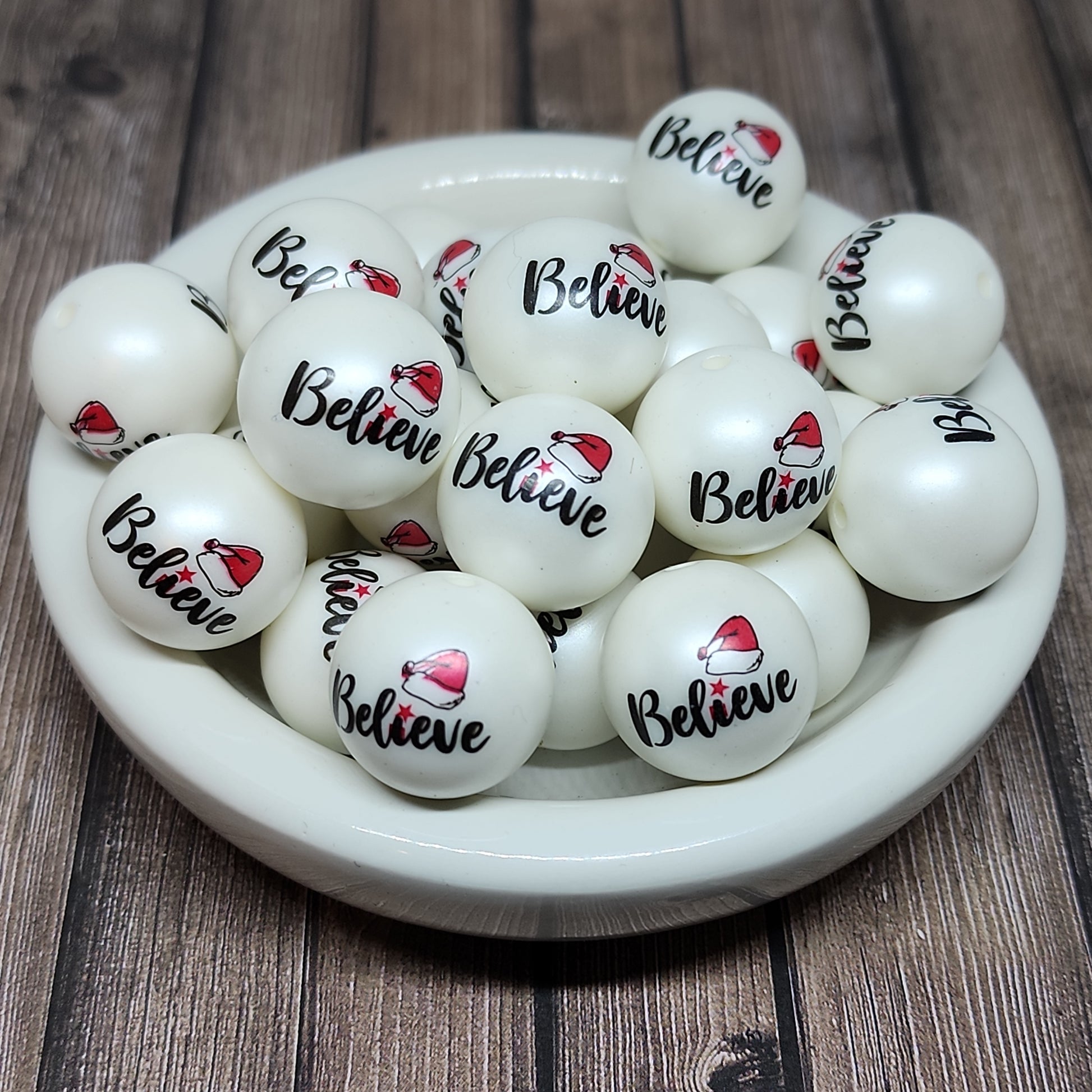 20mm Believe Santa Beads are perfect for Christmas Decor or Arts and Crafts! You can purchase in packs of 1, 4, 12 and 24.