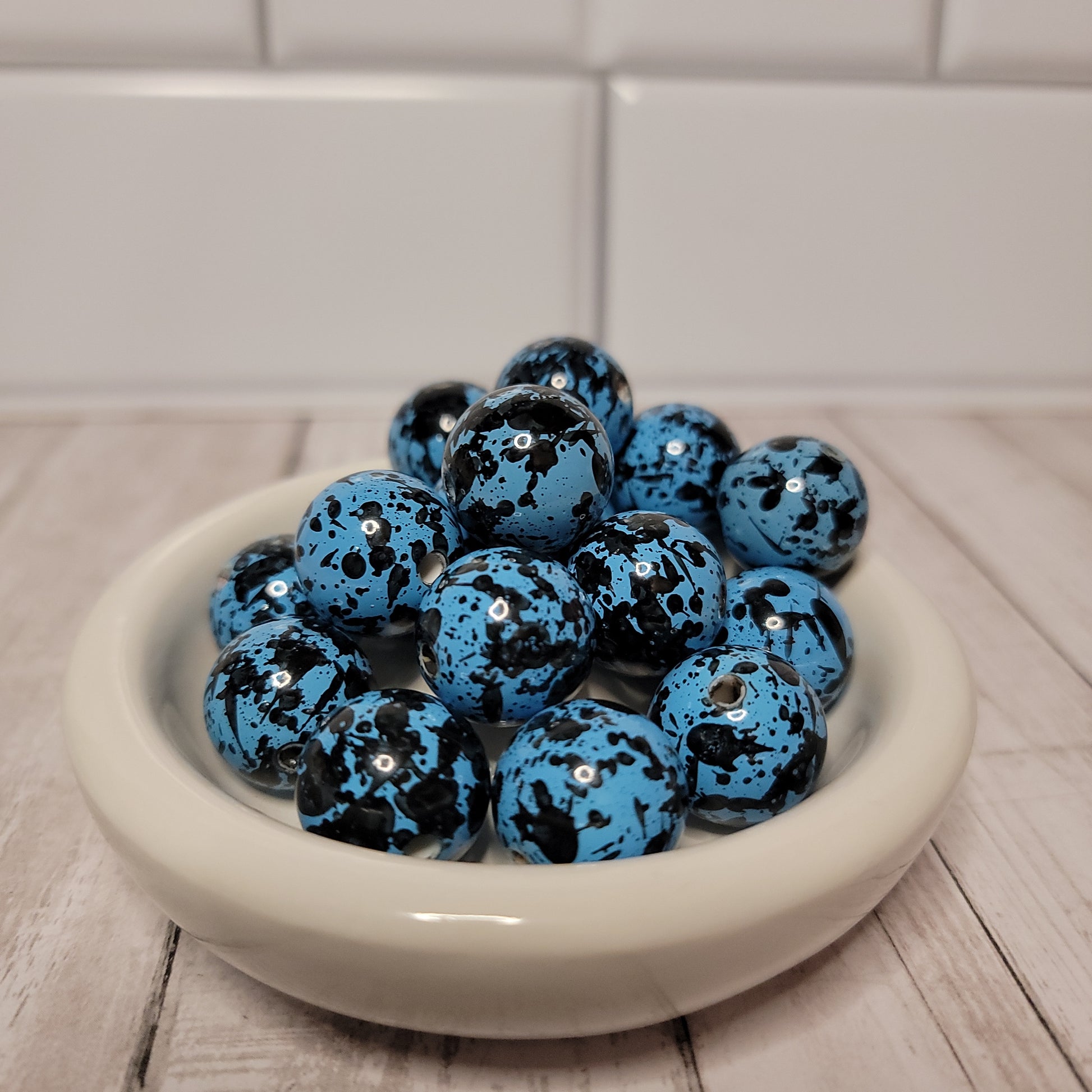 20mm Blue and Black Splatter Beads are perfect for home decor and crafts! Available in 1, 4, 12 and 24 packs.