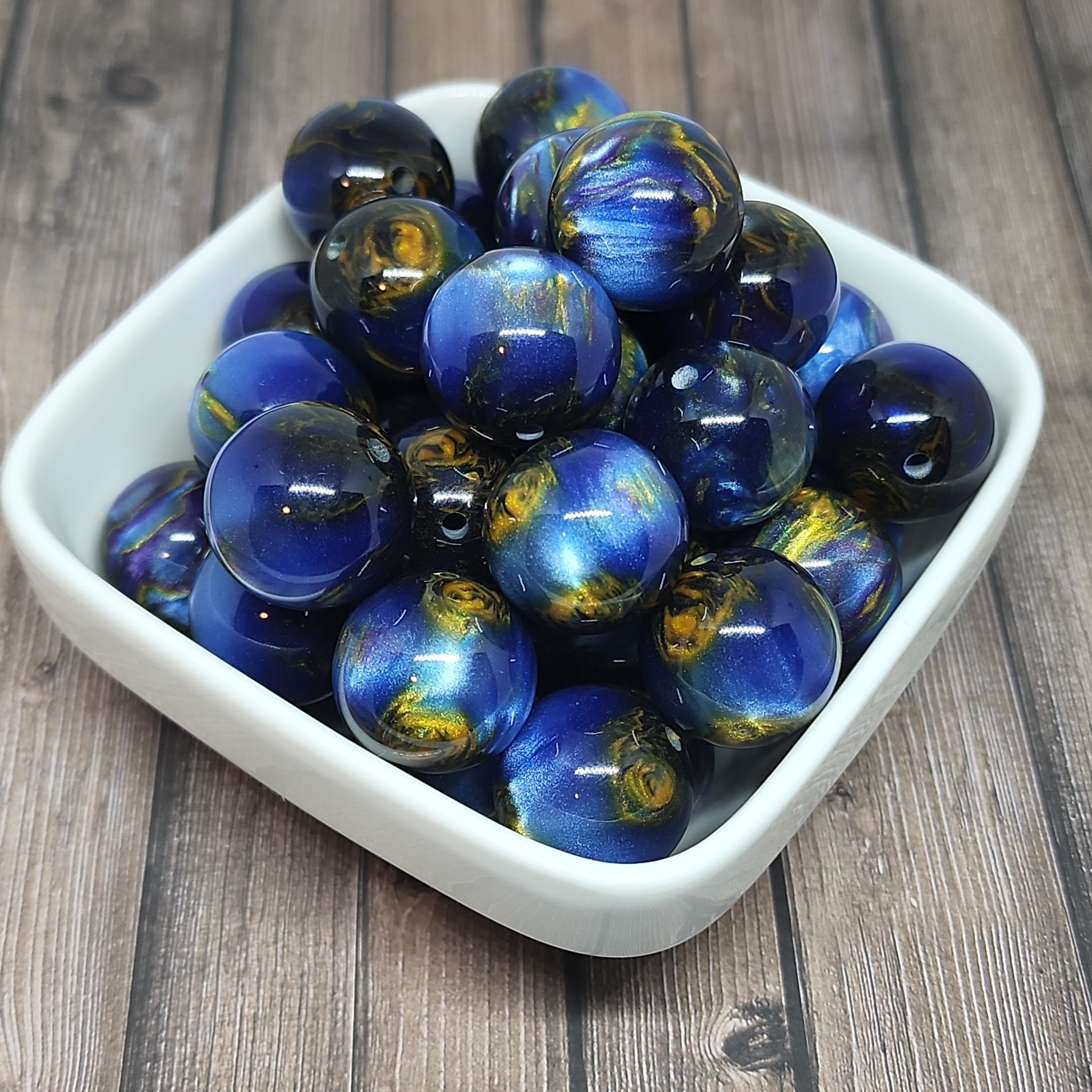 20mm Blue and Gold Milkyway l Beads are perfect for home decor or Arts and Crafts! You can purchase in packs of 1, 4, 12 and 24.