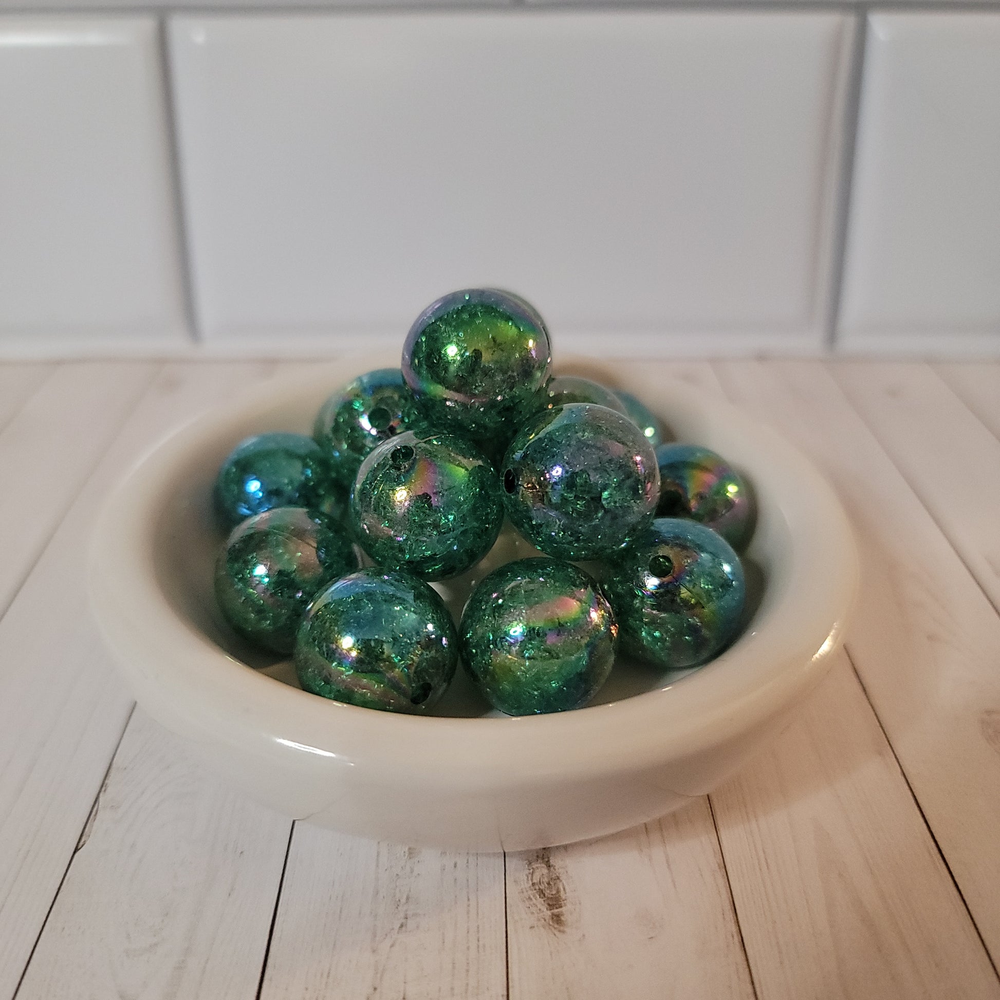 20 MM Cosmic Forest Green Beads are perfect for home decor or Arts and Crafts! You can purchase in packs of 1, 4, 12 and 24.