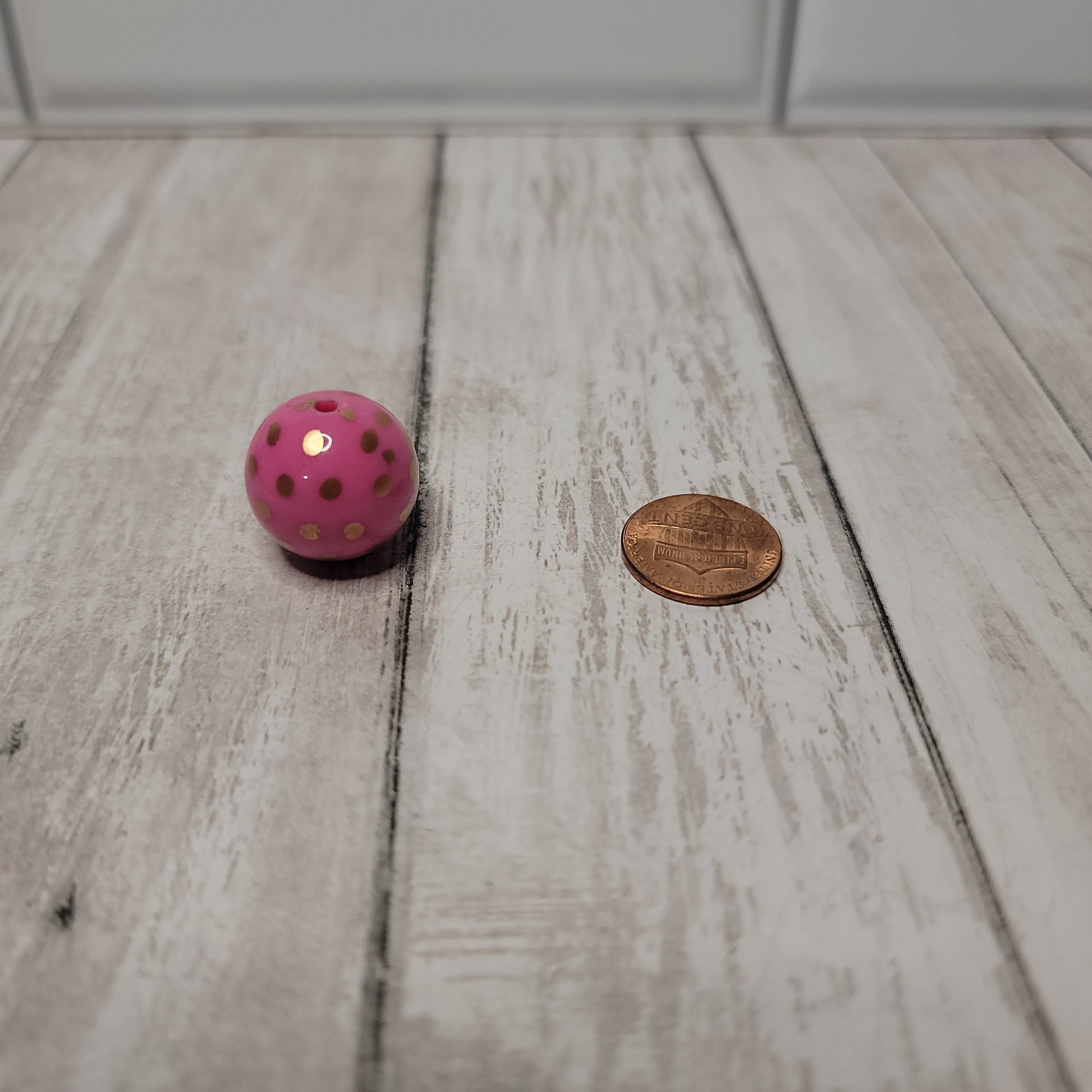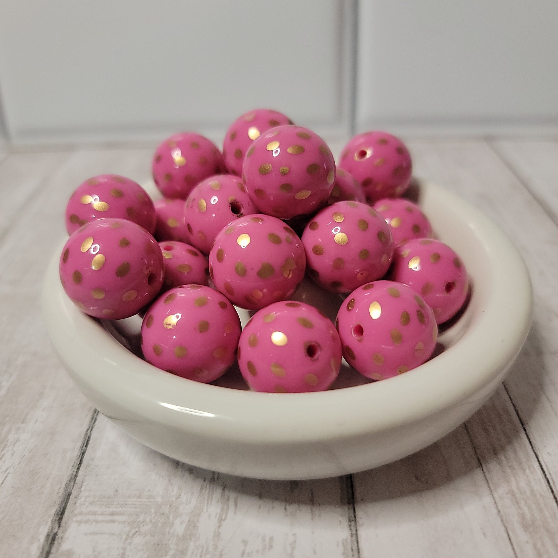 20mm Hot Pink and Gold Polka Dot Beads are perfect for home decor or Arts and Crafts! You can purchase in packs of 1, 4, 12 and 24.