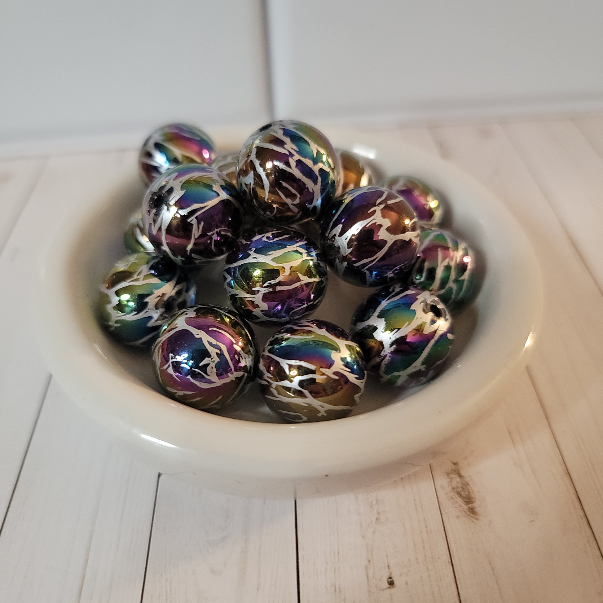20mm Rainbow Lightning Beads are perfect for home decor or Arts and Crafts! You can purchase in packs of 1, 4, 12 and 24.