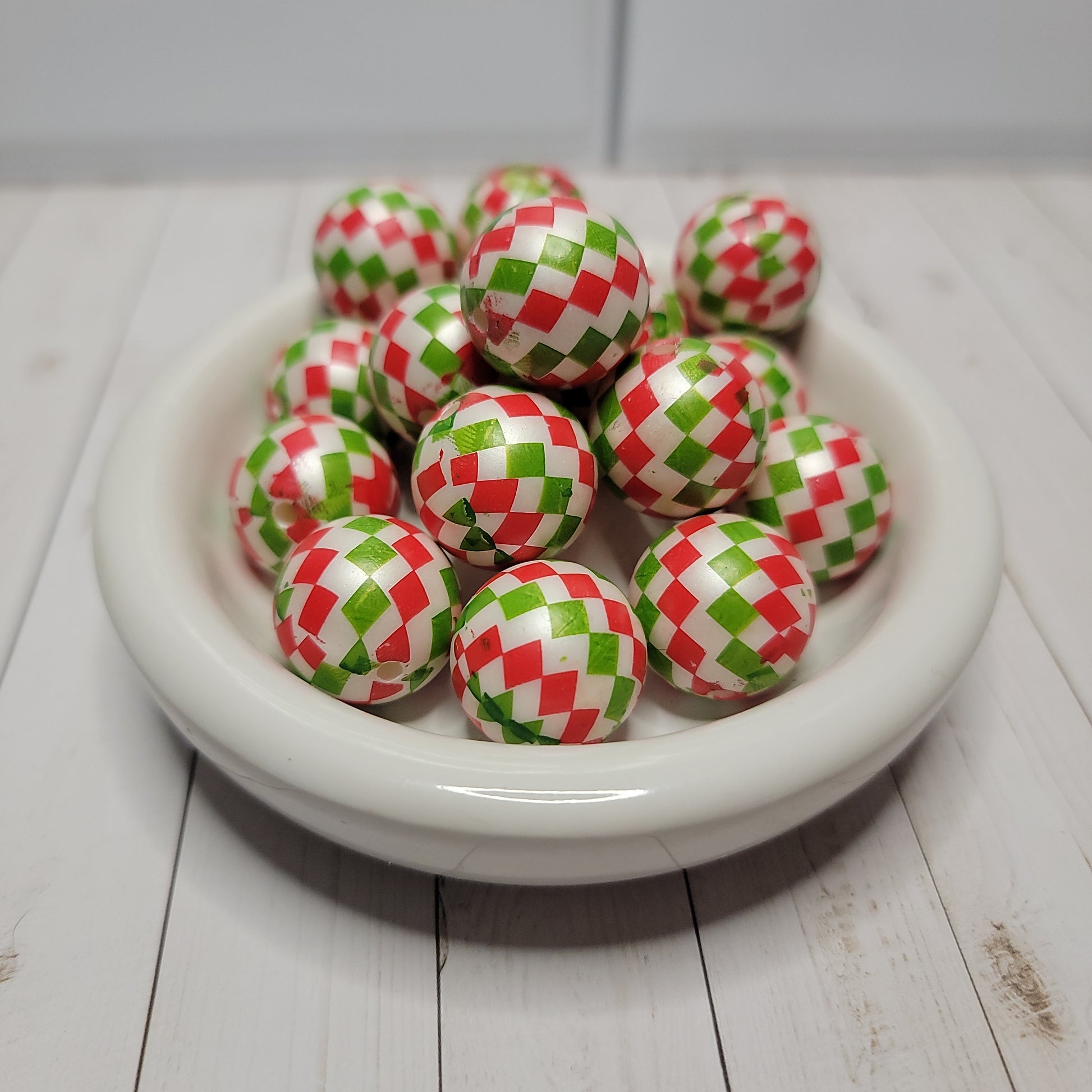 20mm Red and Green Checkered beads are perfect for home decor and crafts! Available in 1, 4, 12 and 24 packs.
