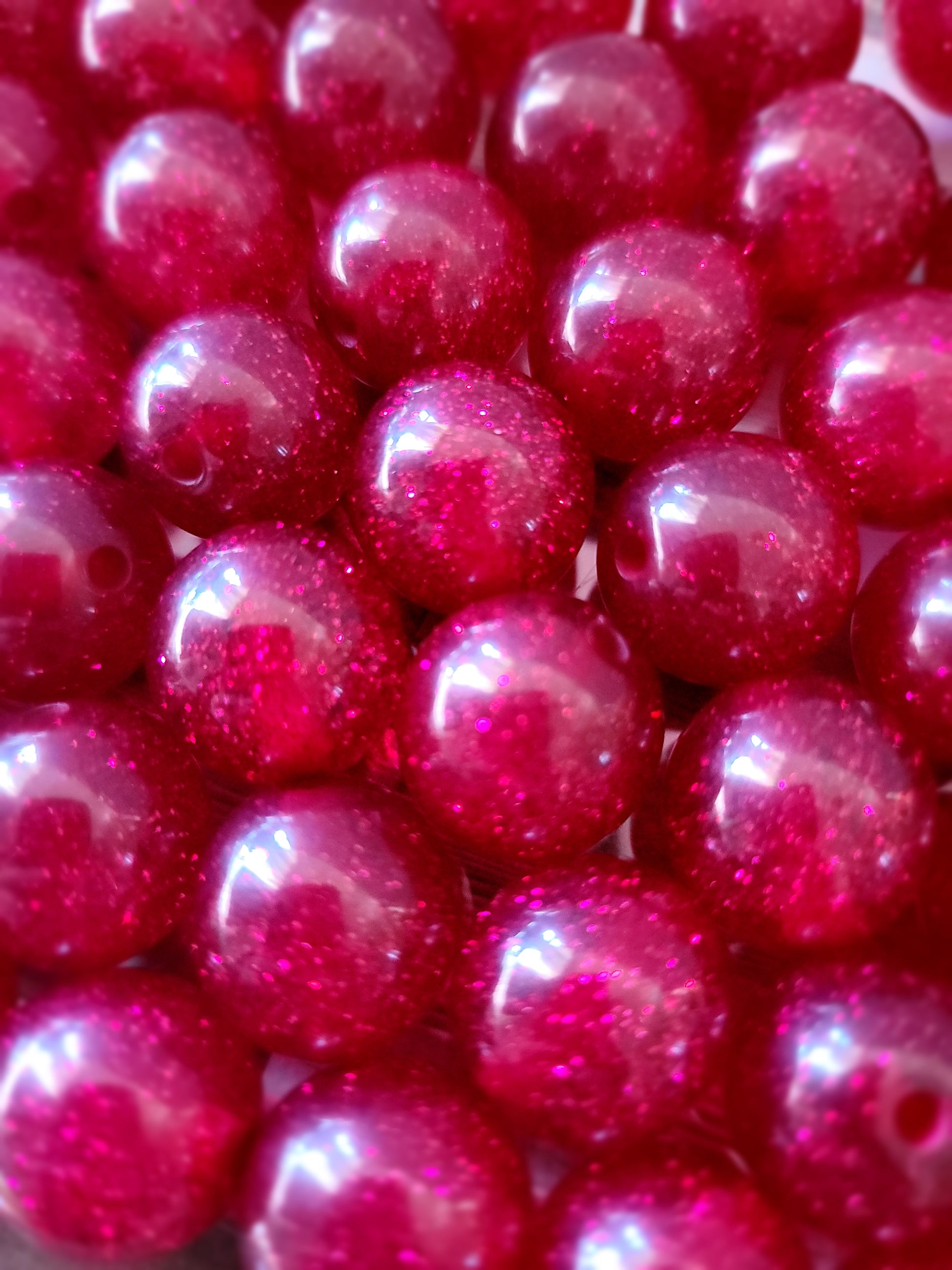 20mm Glittery Red Beads are perfect for home decor or Arts and Crafts! You can purchase in packs of 1, 4, 8 and 12.