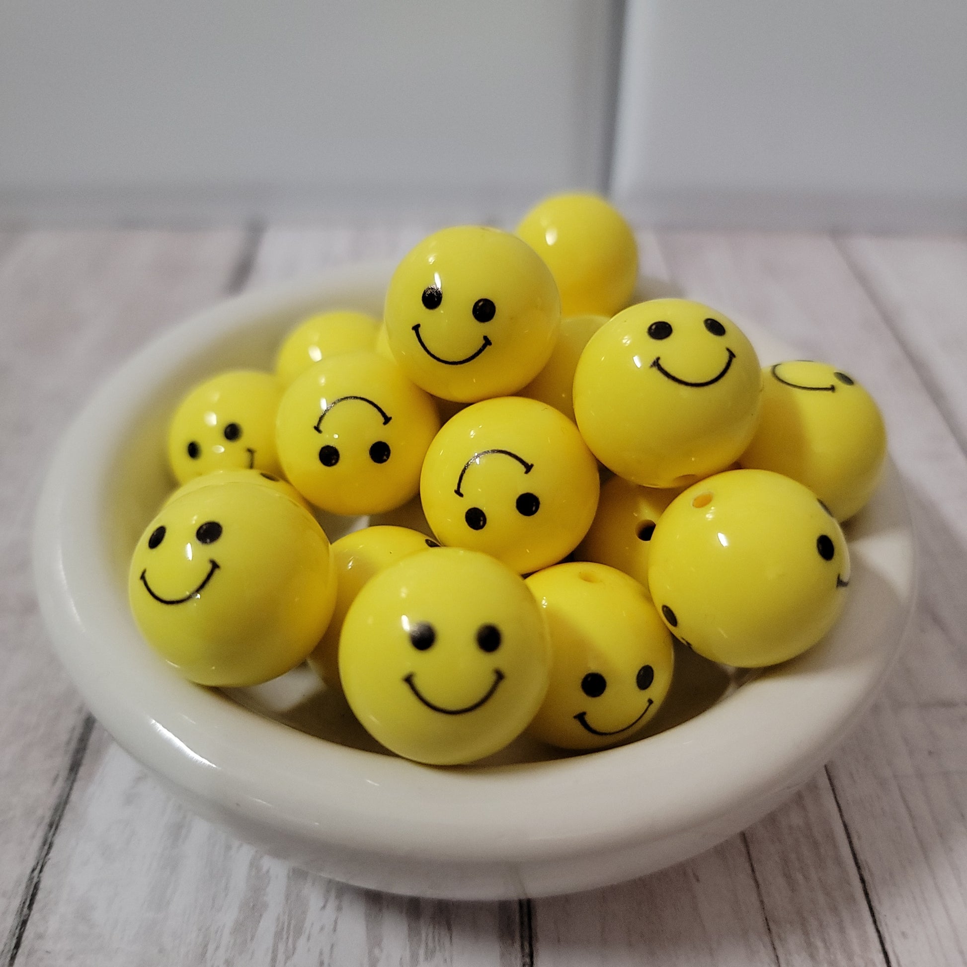 20mm Yellow Happy Face Beads are perfect for home decor and crafts! Available in 1, 4, 12 and 24 packs.
