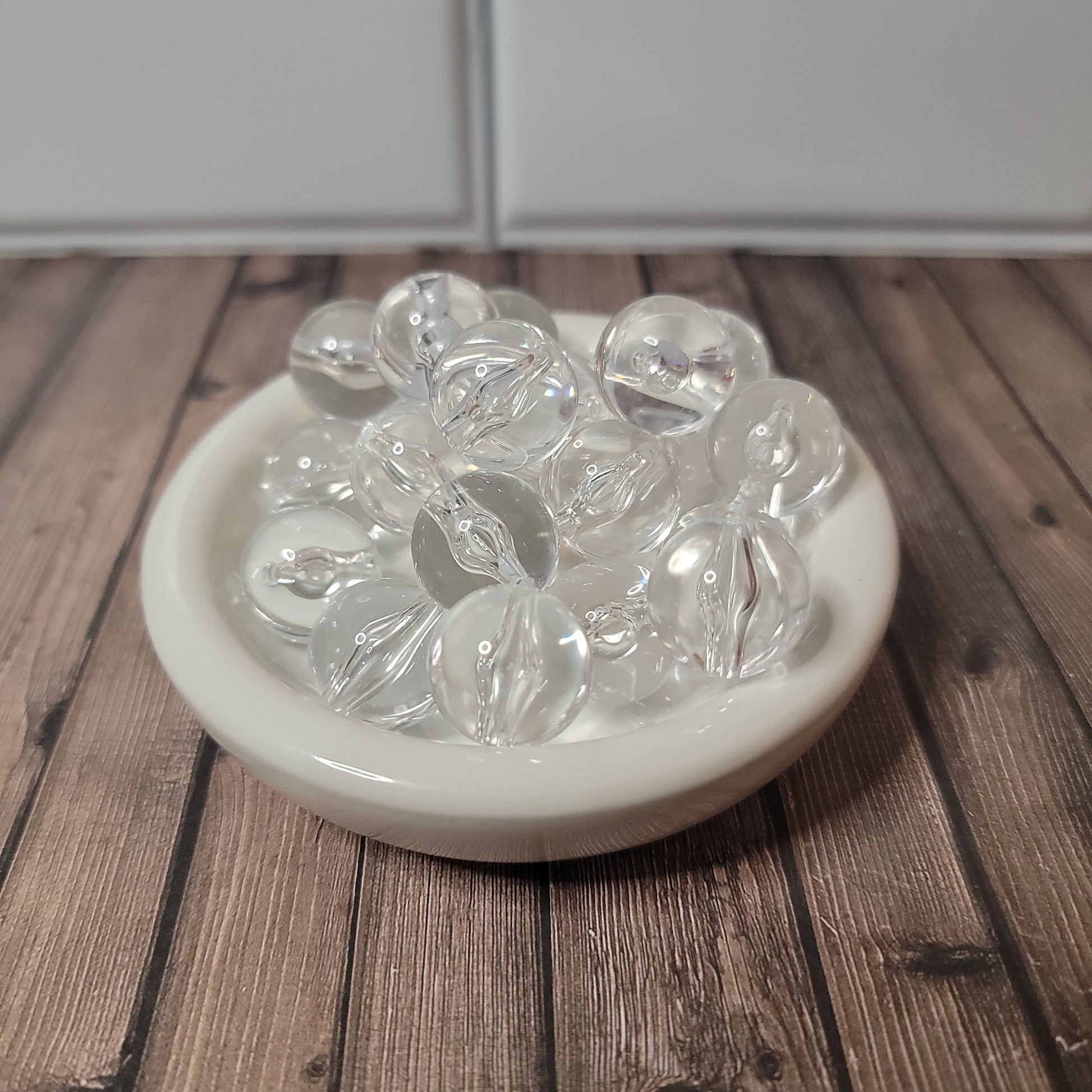 20 MM Crystal Clear Beads are perfect for home decor or Arts and Crafts! You can purchase in packs of 1, 4, 8 and 12.